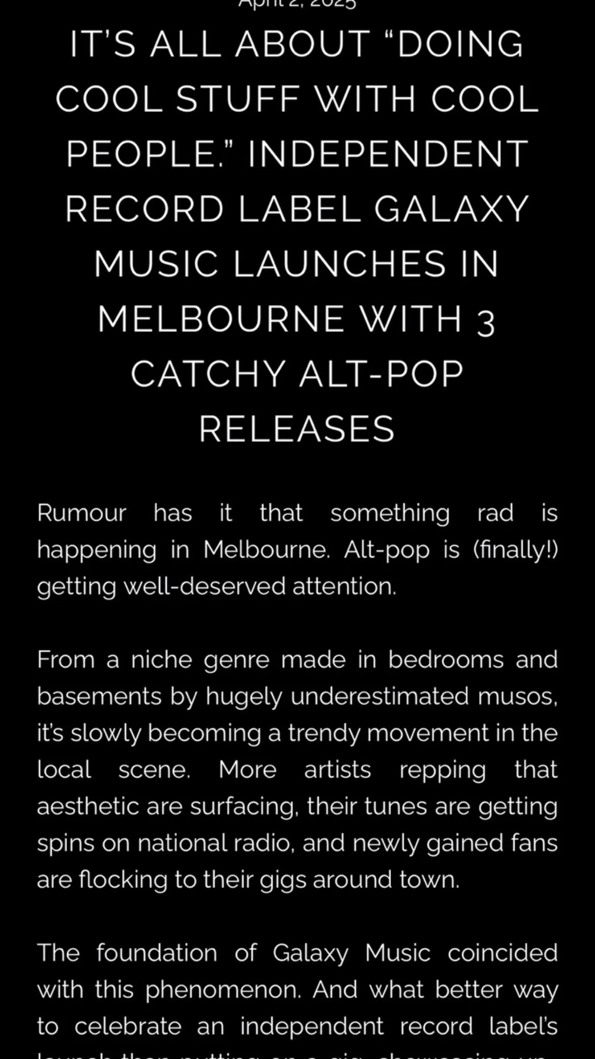 April ‘25 sees a trio of fresh alt-pop artists dropping new singles, packaged harmoniously together on a 12” - this is Galaxy Music’s ‘Label Sampler V1’.